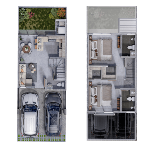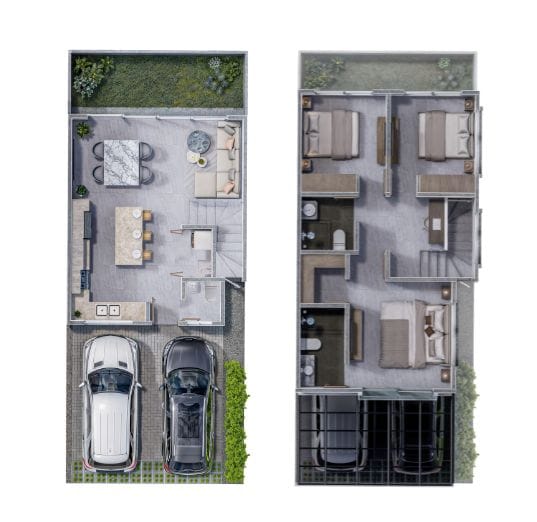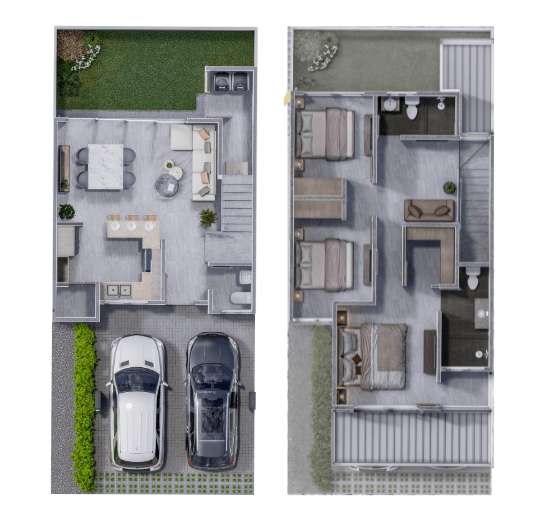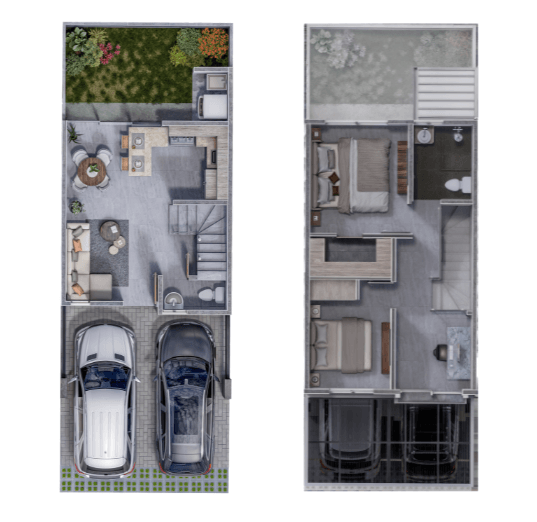 - Casas de dos y tres habitaciones